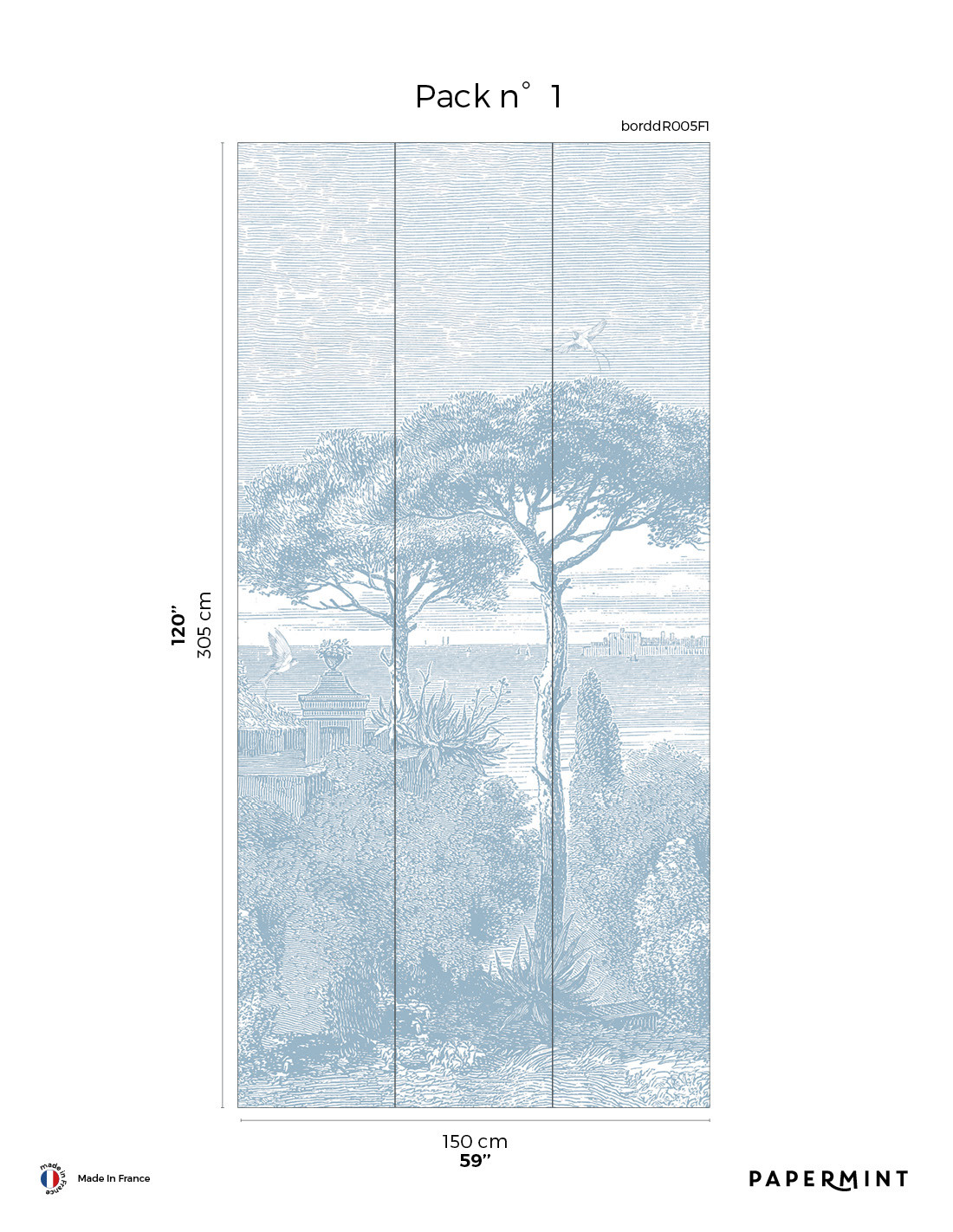 Total size : Total length W450 x H305cm • Pack of W150 x 305 cm (3 strips width 50cm) sold individually