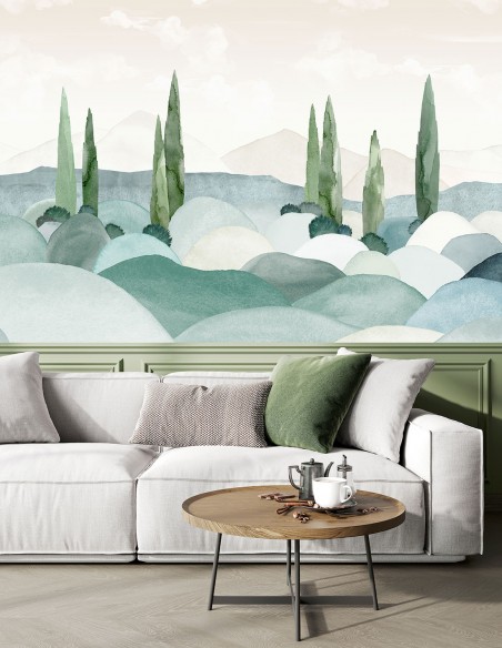 Tip! Move the framing of the visual to suit your needs ! The steps : - Step 1: Choose the colour - Step 2: Choose the print substrate - Step 3: Enter the dimensions of your wall, width and height in cm. Prices vary depending on the dimensions, the substrate and whether you choose to move the centring of the design according to your preference. Please note about centring: the position of the decor when printed may vary by 2-3 cm.