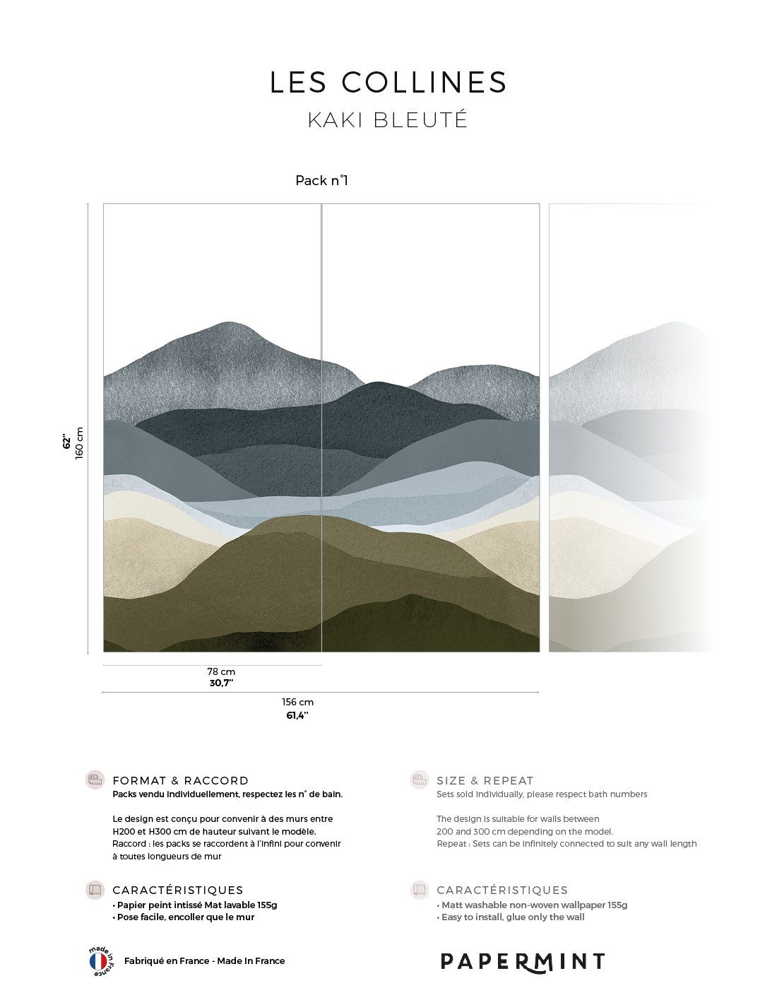 Description du produit : Les Collines • Wallpanel Pack • H160 x W.156cm