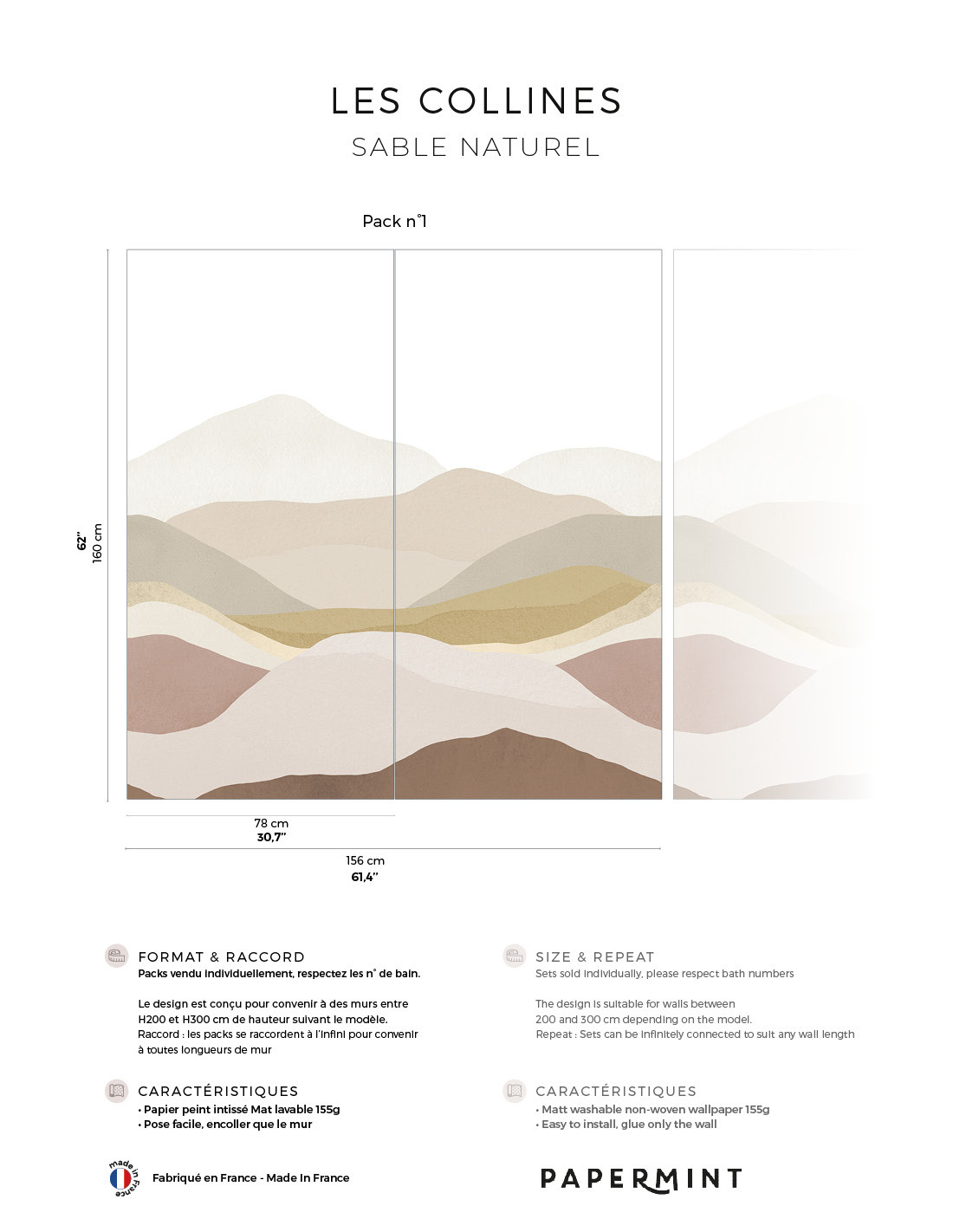 Description du produit : Les Collines • Wallpanel Pack • H160 x W.156cm