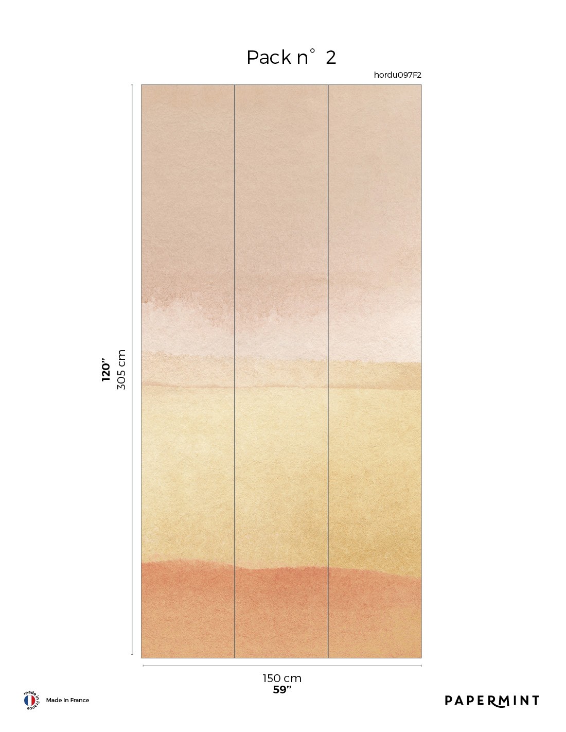 Total size : Total length W450 x H305cm • Pack of W150 x 305 cm (3 strips width 50cm) sold individually
