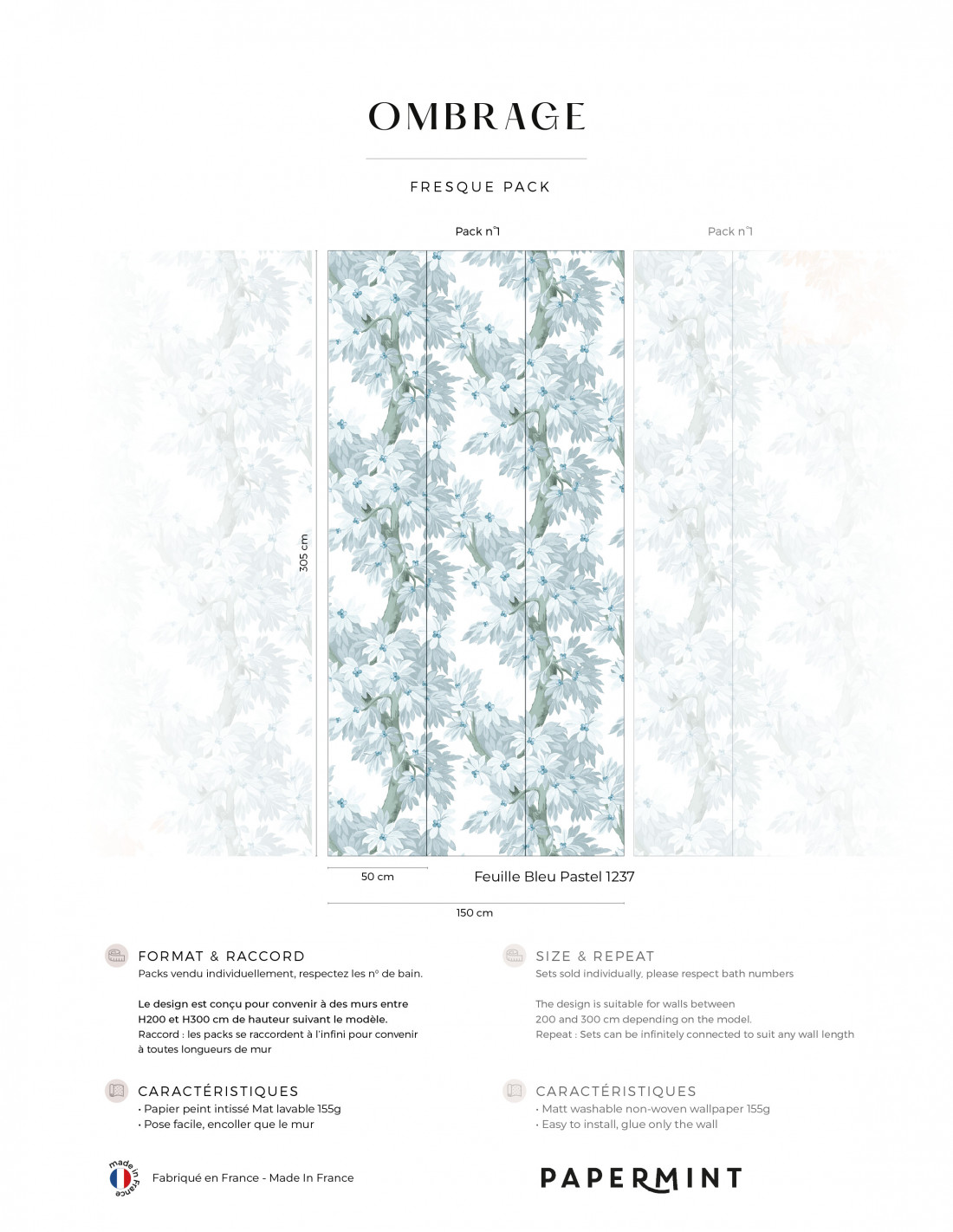Support type : WallDecor MAT • Papier peint intissé lavable • 155g