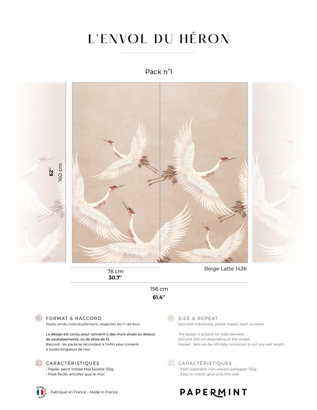 L’envol du héron • Wallpanel Pack • H160 x W.156cm