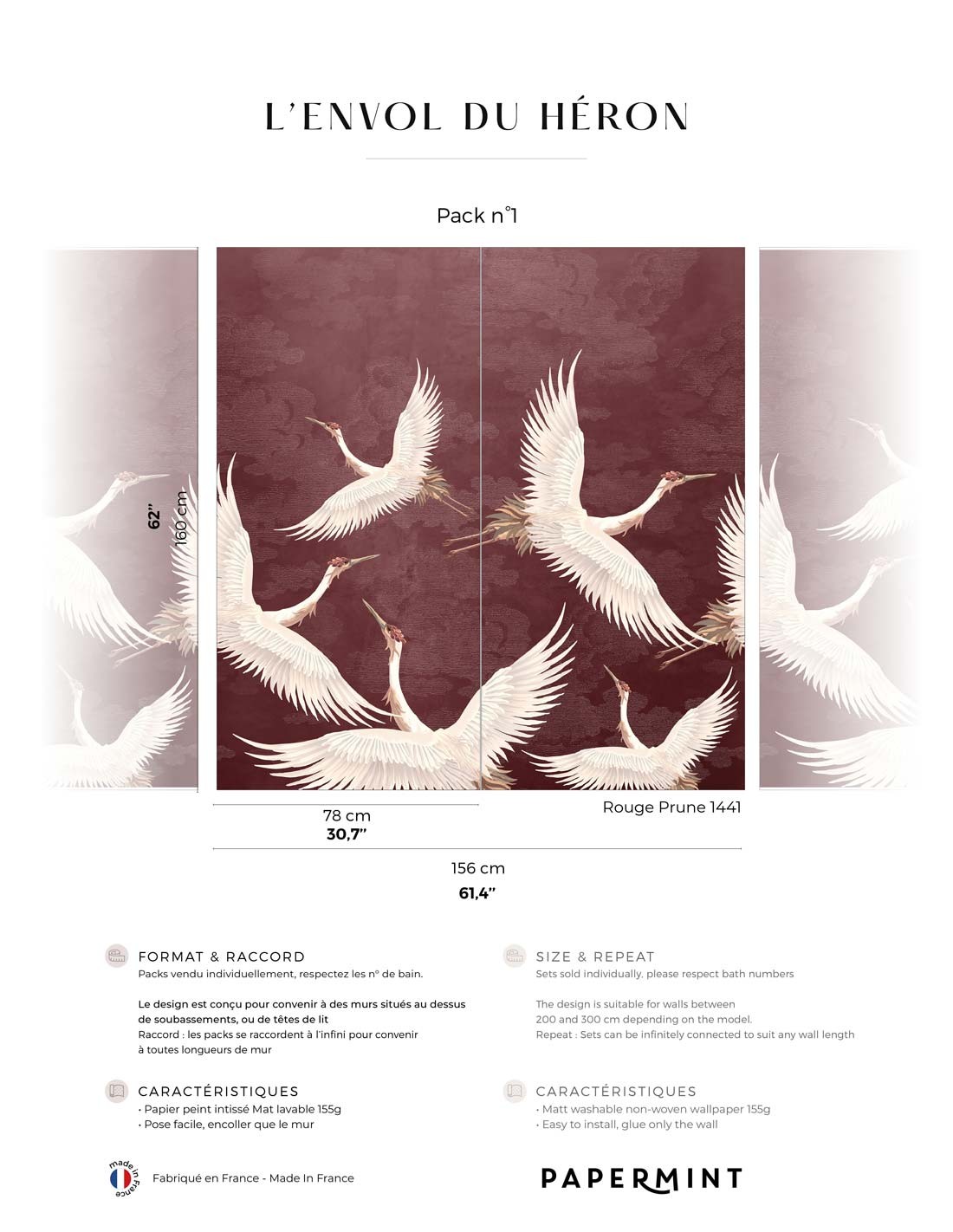L’envol du héron • Wallpanel Pack • H160 x W.156cm