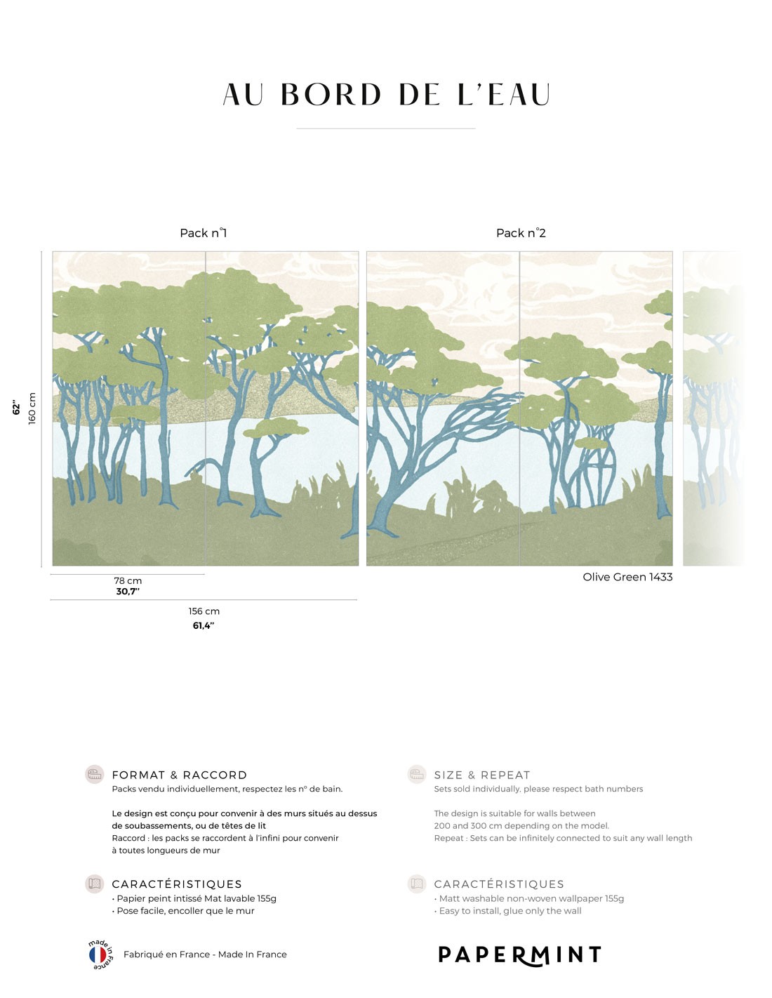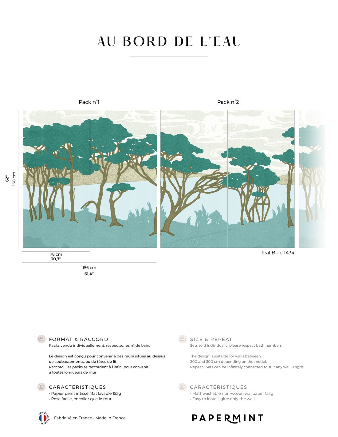 Description du produit : Au Bord de l'Eau • Fresque Pack • H.160 x L.156cm