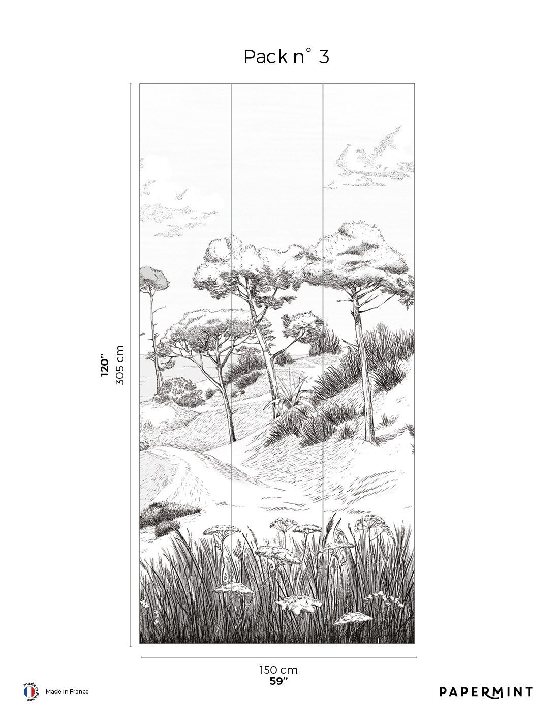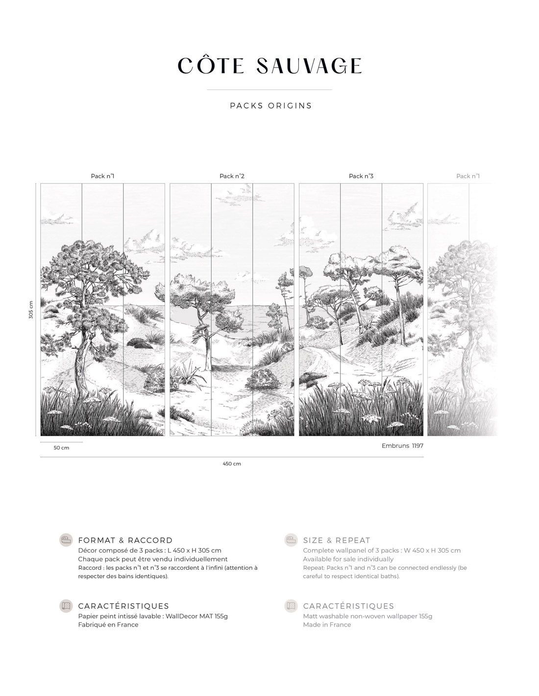 Dimension totale : Décor complet : L450 x H305cm • Pack de L150 x 305 cm (3 lés de Largeur 50cm) vendu individuellement
