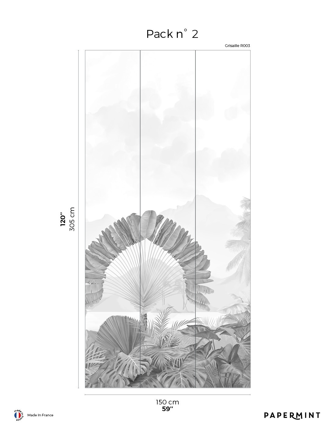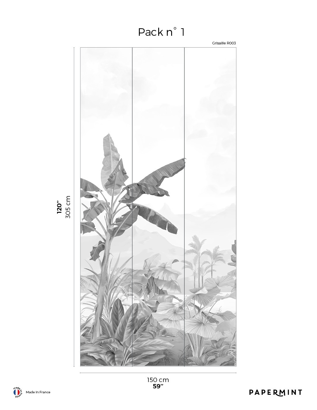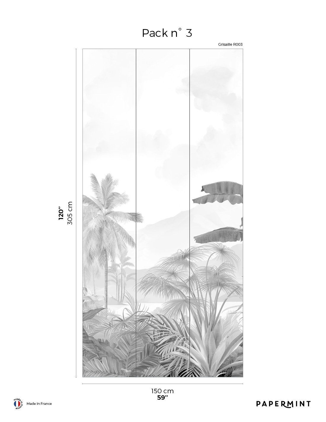 Dimension totale : Décor complet : L450 x H305cm • Pack de L150 x 305 cm (3 lés de Largeur 50cm) vendu individuellement