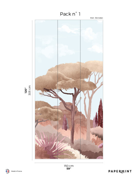 Dimension totale : Décor complet : L450 x H305cm • Pack de L150 x 305 cm (3 lés de Largeur 50cm) vendu individuellement