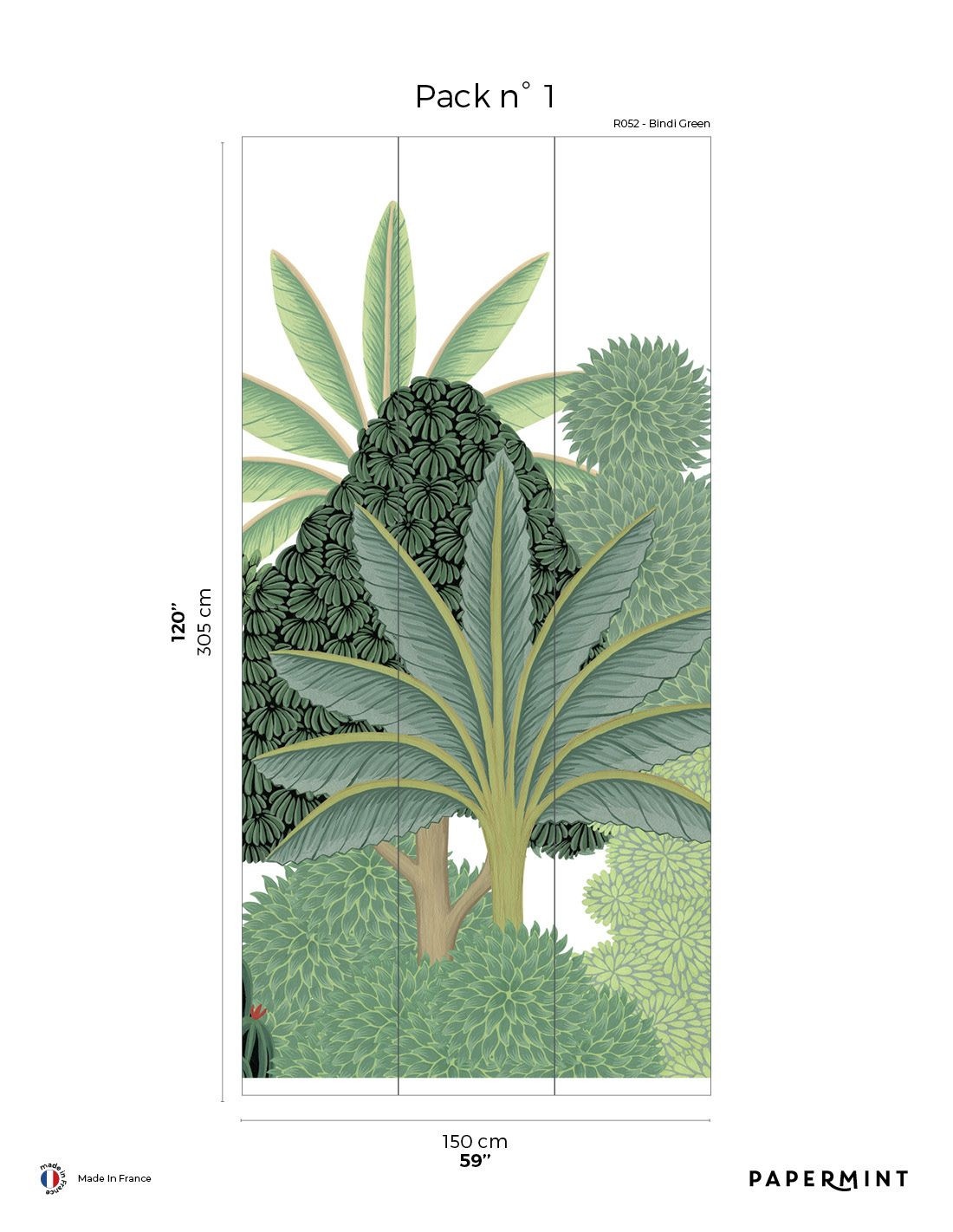 Dimension totale : Décor complet : L450 x H305cm • Pack de L150 x 305 cm (3 lés de Largeur 50cm) vendu individuellement