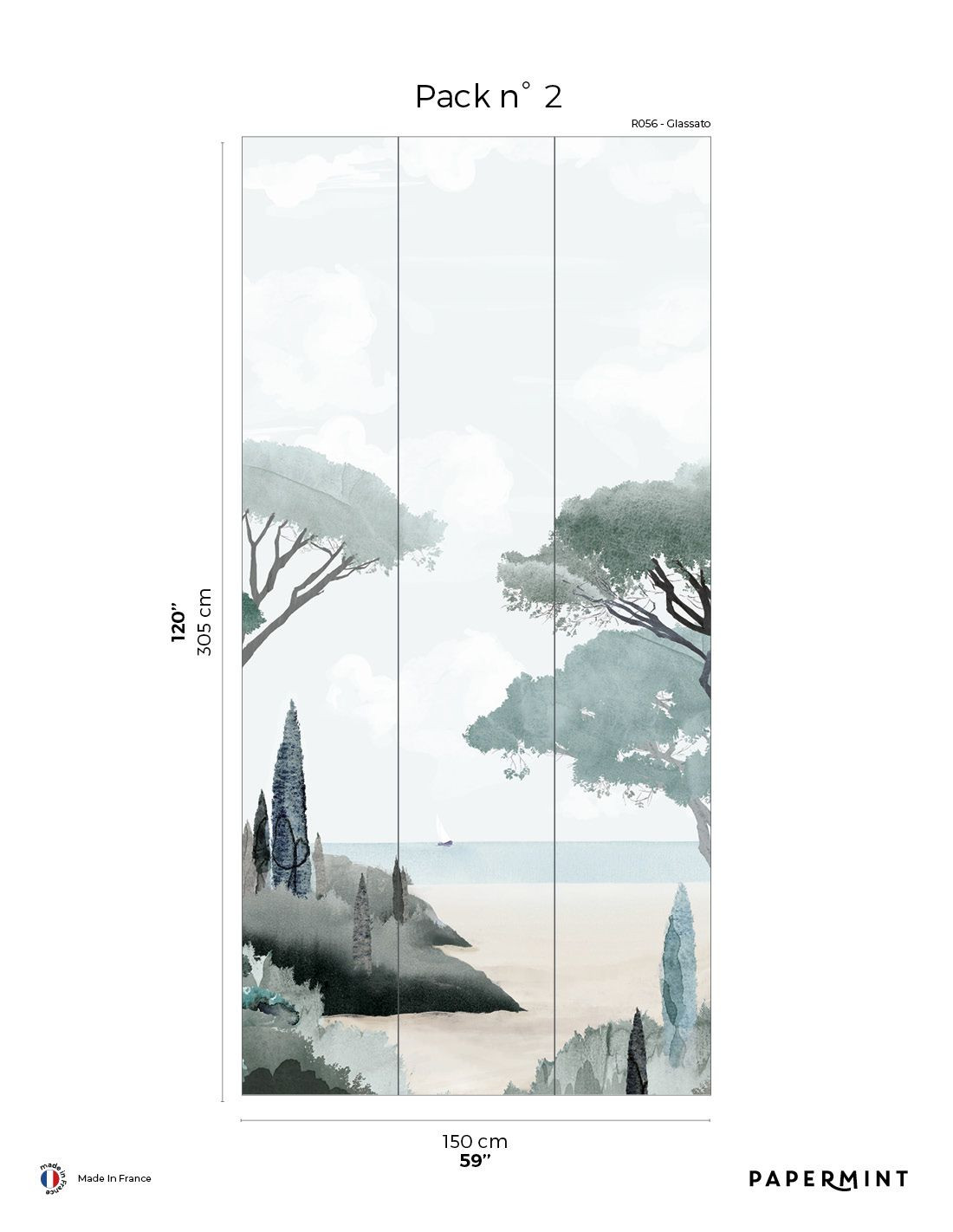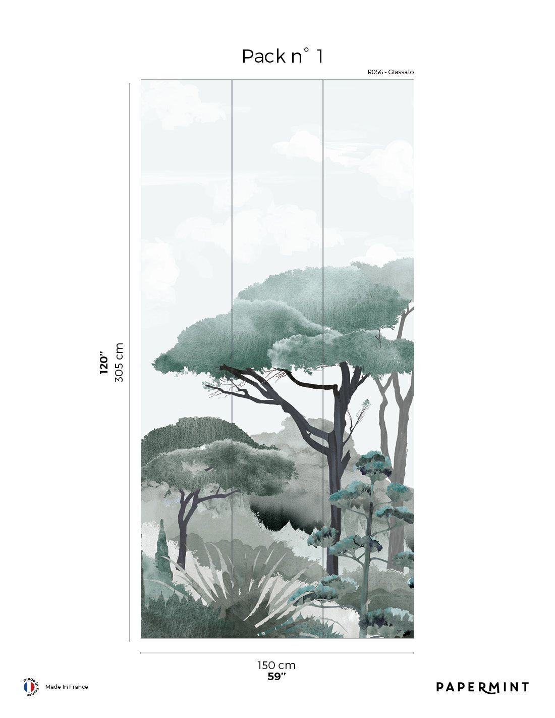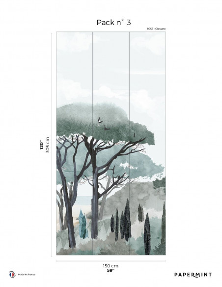 Dimension totale : Décor complet : L450 x H305cm • Pack de L150 x 305 cm (3 lés de Largeur 50cm) vendu individuellement