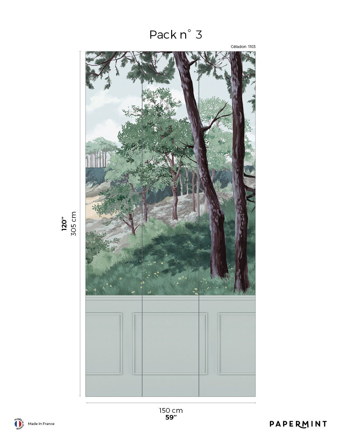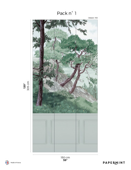 Dimension totale : Décor complet : L450 x H305cm • Pack de L150 x 305 cm (3 lés de Largeur 50cm) vendu individuellement