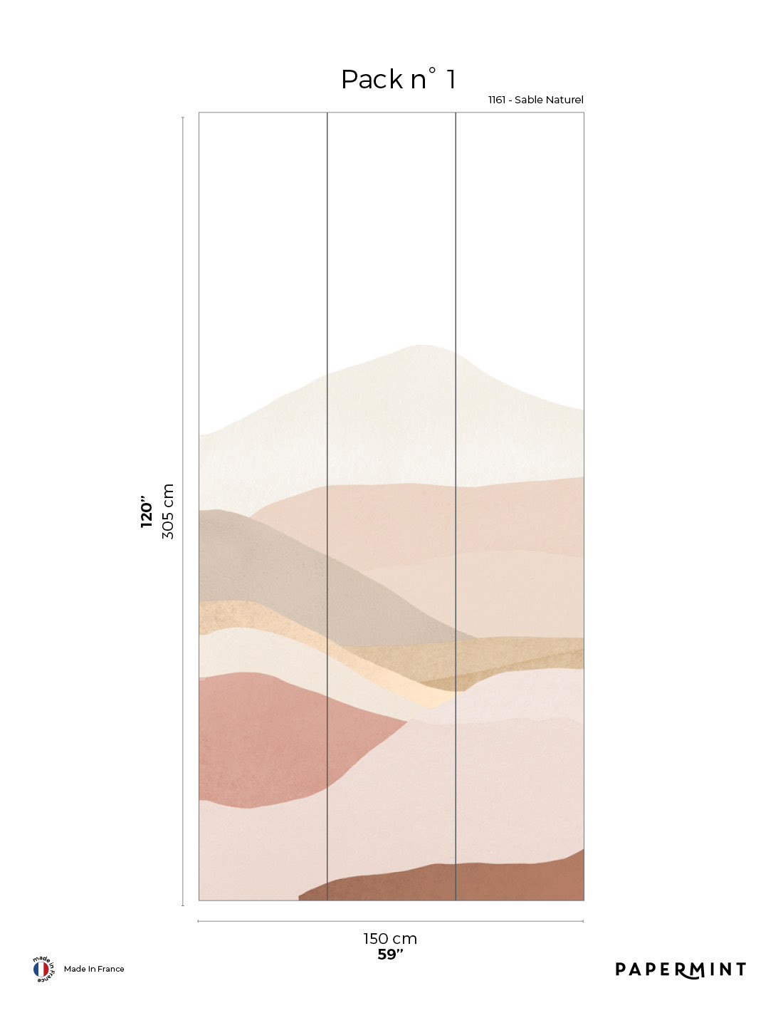 Décor complet : L300 x H305cm • Pack de L150 x 305 cm (3 lés de Largeur 50cm) vendu individuellement