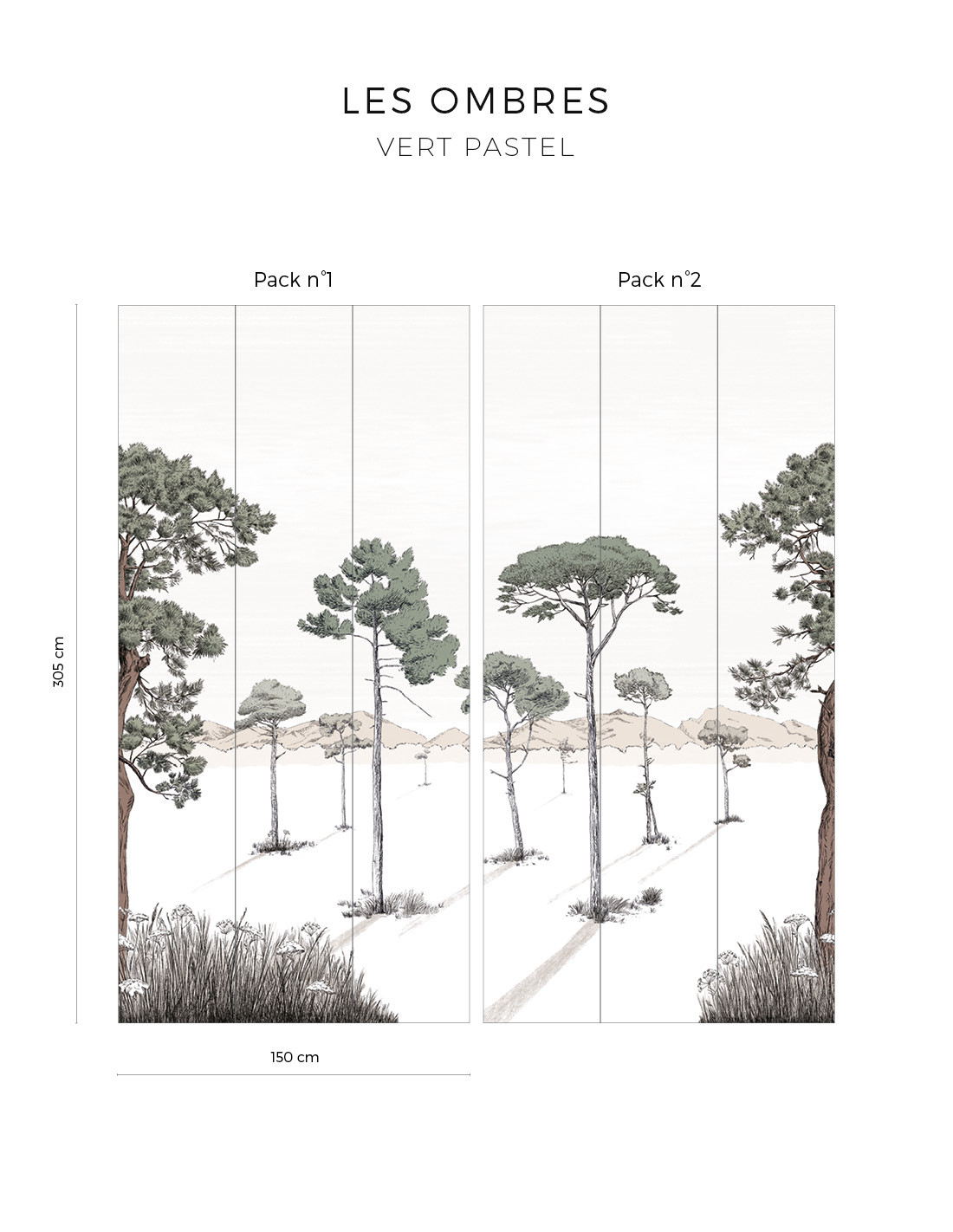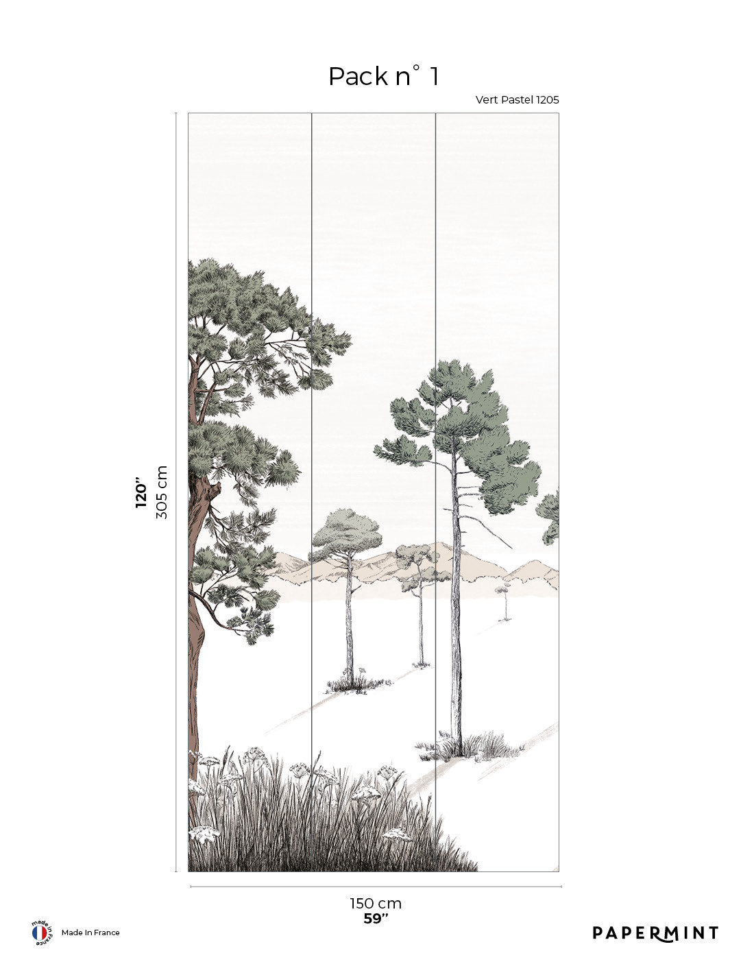 Dimension totale : Décor complet : L300 x H305cm • Pack de L150 x 305 cm (3 lés de Largeur 50cm) vendu individuellement