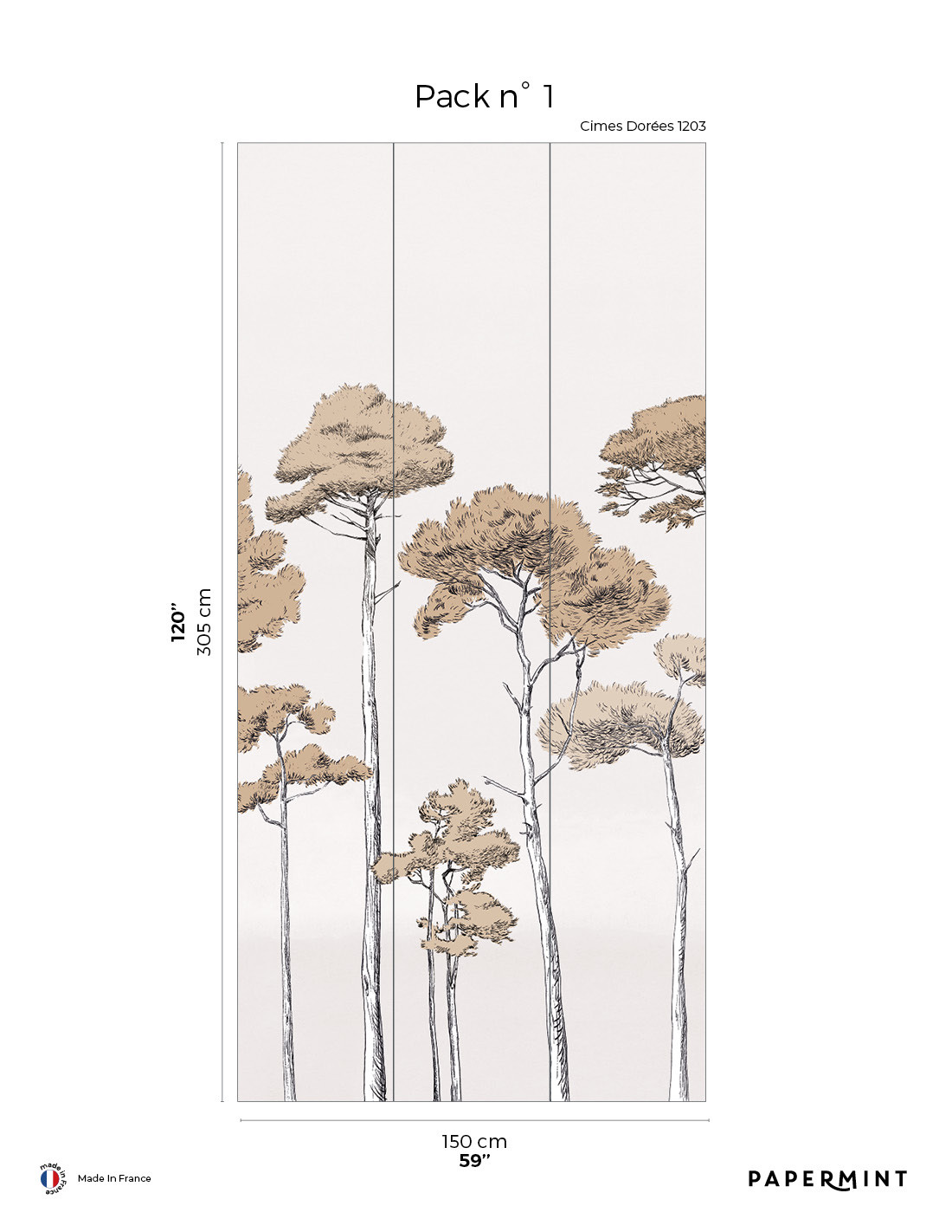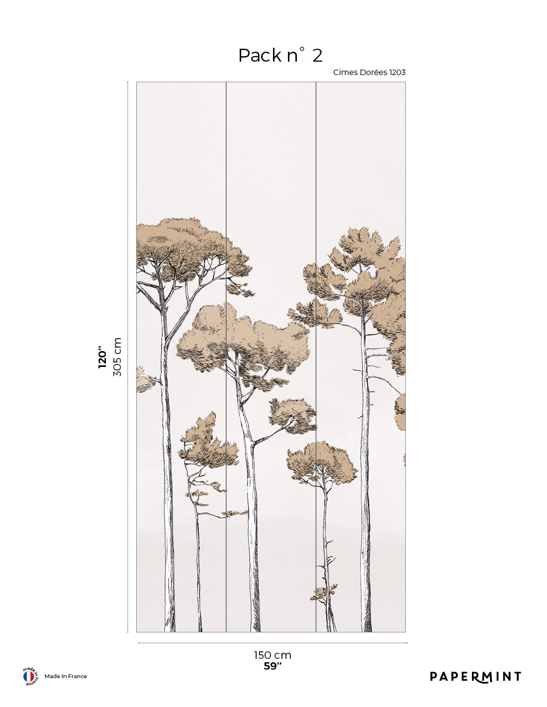 Décor complet : L300 x H305cm • Pack de L150 x 305 cm (3 lés de Largeur 50cm) vendu individuellement