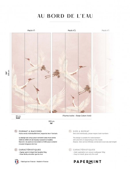 Décor complet : L300 x H305cm • Pack de L150 x 305 cm (3 lés de Largeur 50cm) vendu individuellement