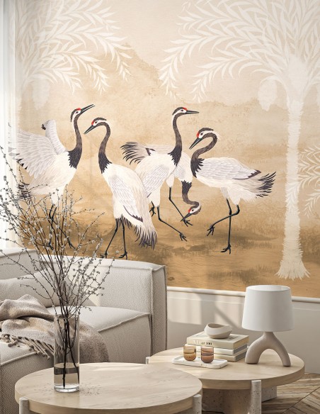 Indian Cranes • Cinq Grues - Fresque personnalisable