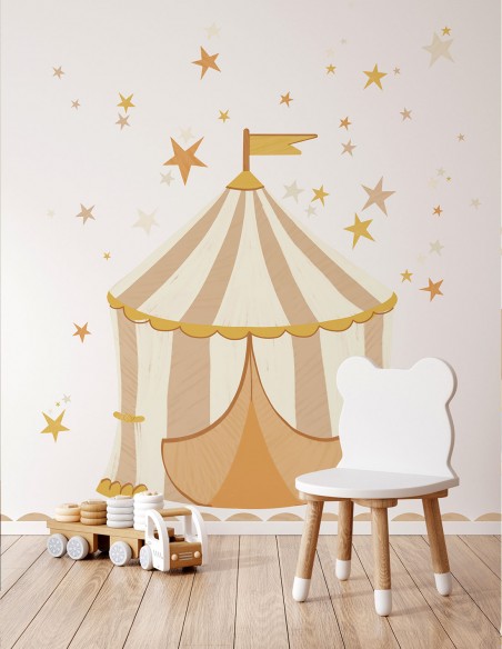 Planche composée de 1 grand chapiteau, 4 frises, 1 piste et 46 étoiles