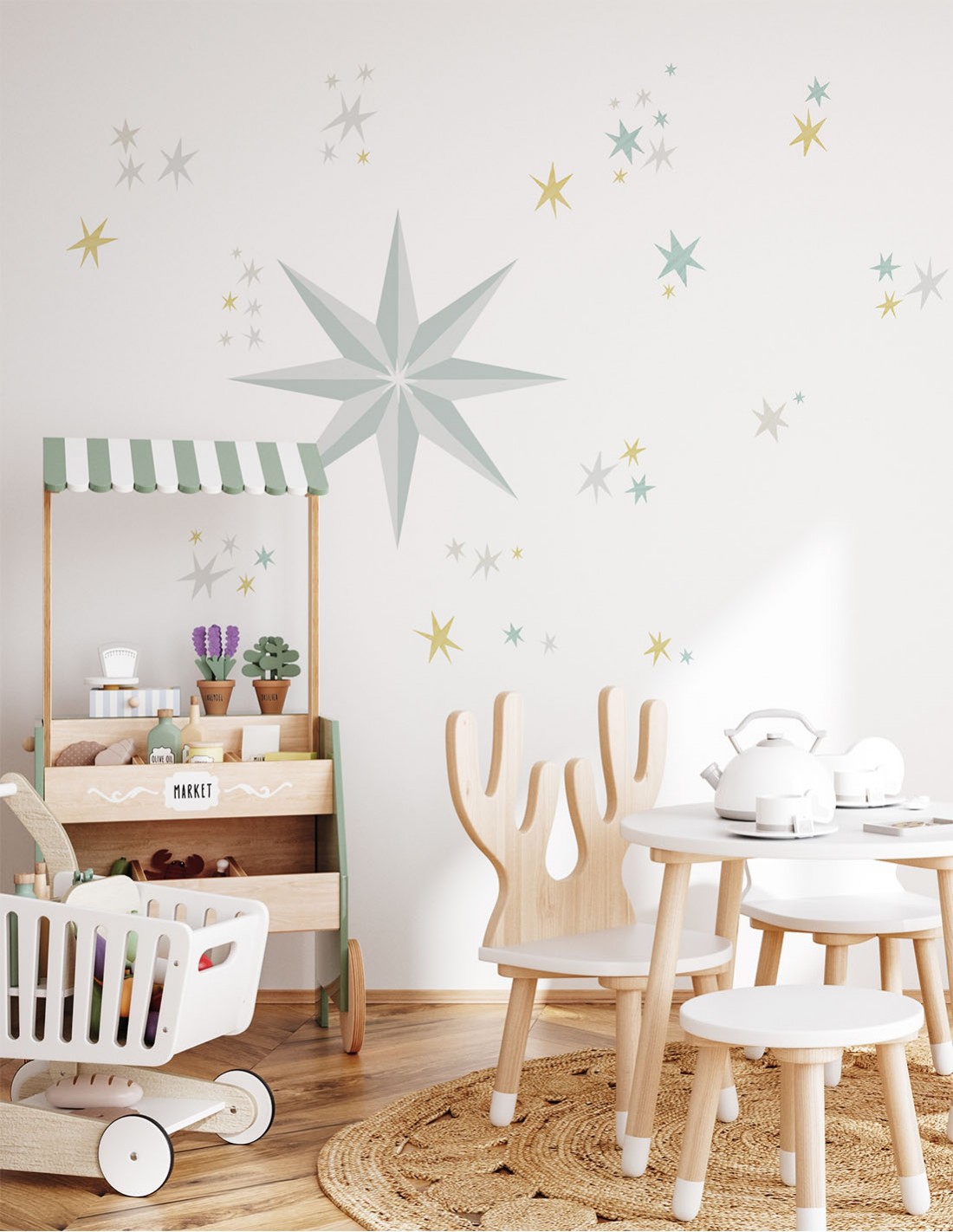 Planche composée de 1 grande étoile et 65 petites étoiles
