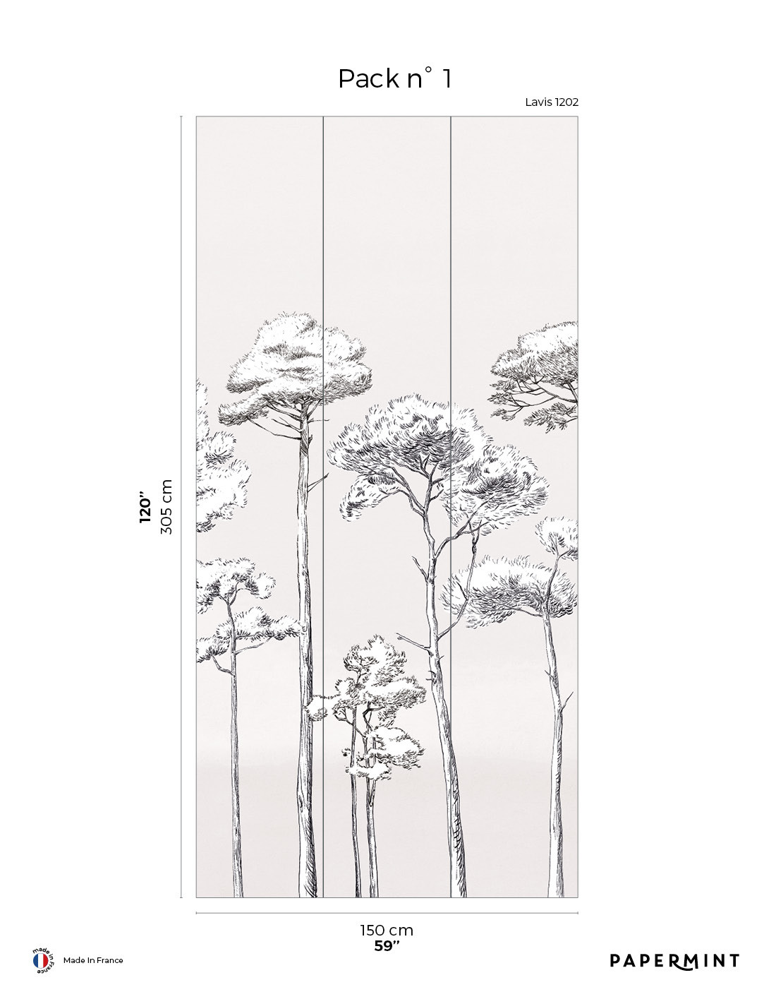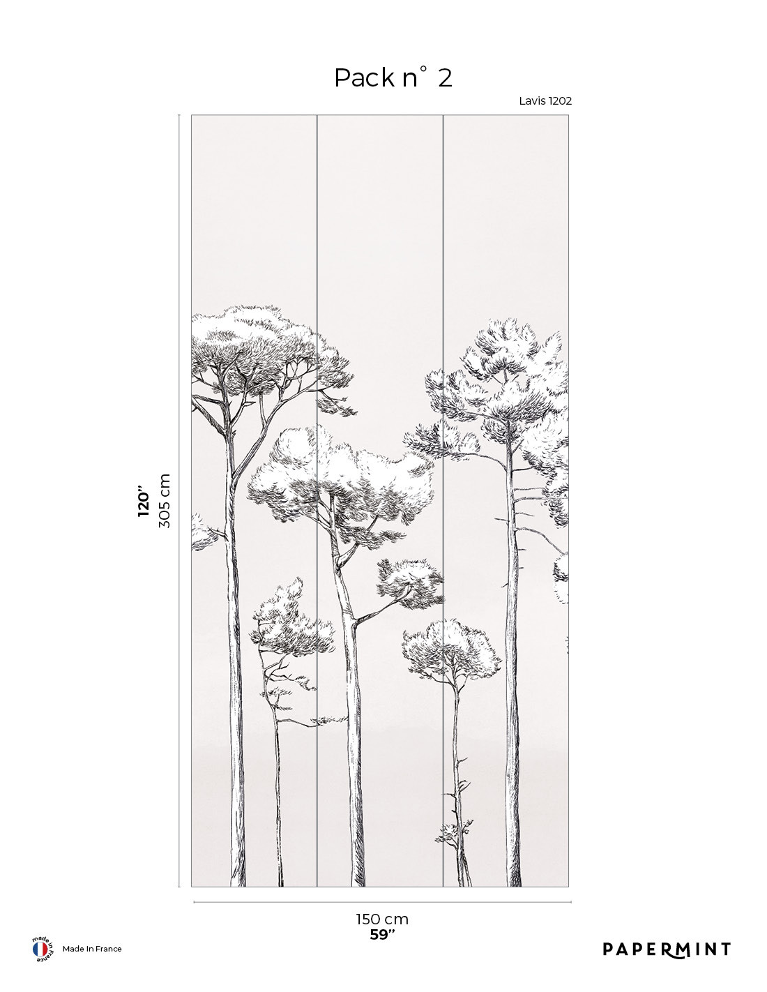 Longueur total du décor L300 x H305cm • Pack de L150 x 305 cm vendu individuellement